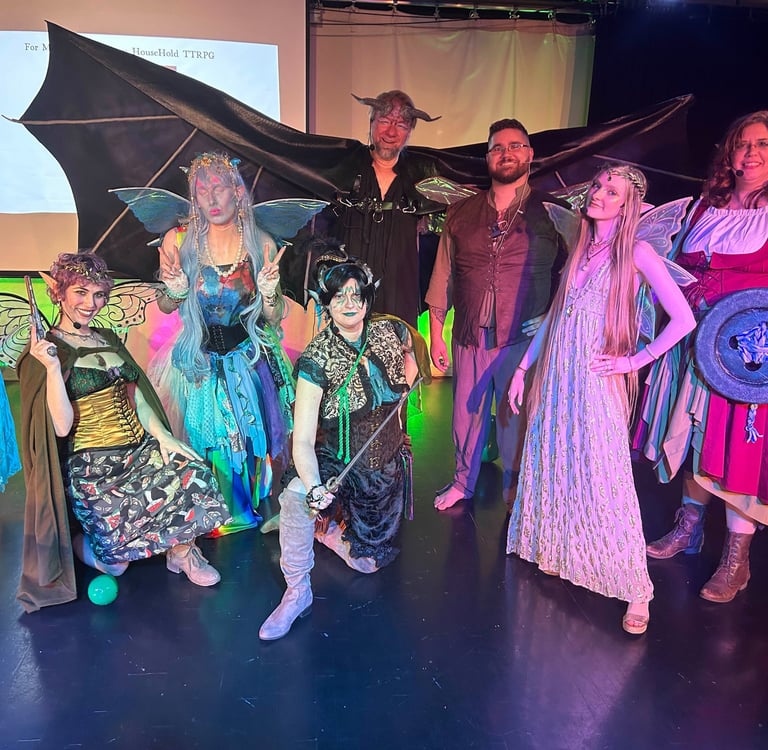 Wow! What an incredible experience we had with our latest fairy show! Every time we come together to perform, it's like magic fills the air, and this time was no different. We would like to extend a huge thank you to our talented actors who brought the whimsical world to life. Your ability to effortlessly slip into character and embrace the silliness of our household TTRPG made every moment shine!